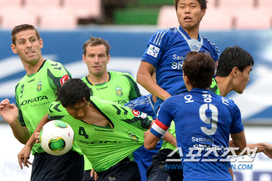 경기는 전북이 압도했다. 공격과 허리, 수비에 이르기까지 전북의 파워는 수원을 압도했다. 문제는 골결정력이었다. 전북의 슈팅은 계속 수원 골문을 외면했다. 전반 38분 레오나르도의 슈팅은 골대를 맞고 나왔다. 여기에 A대표 수문장인 정성룡의 벽도 넘지 못했다. 정성룡은 신들린 선방으로 전북의 파상공세를 막아냈다.