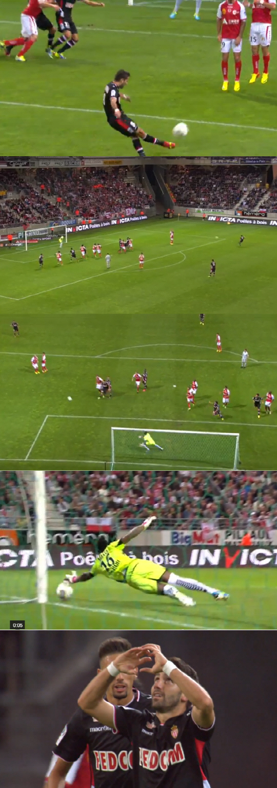주앙 무티뉴(AS모나코)가 환상적인 프리킥 동점골로 팀의 1위를 지켰다.
