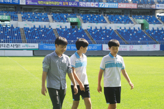 대전 시티즌은 1일 오전 대전월드컵경기장에 회덕중학교 1학년 이민혁 이준혁 나경문 학생을 초청해 축구 관련 직업을 체험할 수 있는 기회를 제공했다. 회덕중학교는 '자유학기제'(중학교 교육과정 중 한 학기 동안 다양한 학생 참여형 체험활동을 하는 것) 시범 연구학교에 선정된 대전광역시 내 4개교 중 한 곳이다. 평소 축구에 관심이 많은 세 학생은 선수단을 비롯해 프런트 등 축구단에 소속된 사람들이 하는 일에 대해 설명을 듣고 대전월드컵경기장 곳곳을 견학하며 미래의 꿈에 대해 생각해보는 소중한 시간을 가졌다. 학생들은 "축구선수가 되고 싶어서 축구장 체험학습을 신청했는데, 오늘 체험을 통해 축구단에 선수뿐만 아니라 다양한 직업이 있다는 사실을 알게 되었다. 직접 라커룸에도 들어가 보고 벤치에도 앉아 보니 무척 신기했다. 축구단에 대해 배울 수 있는 좋은 기회였다"고 참여 소감을 밝혔다.