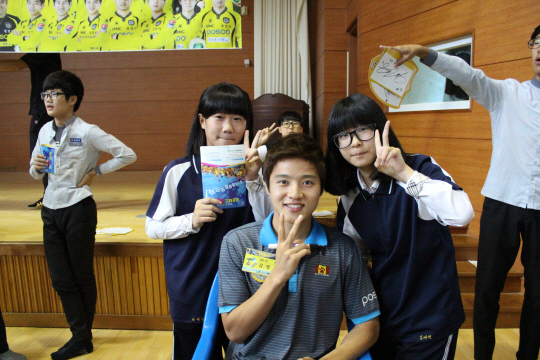 김영욱, 웨슬리, 코니, 이현승 등 16명의 선수들이 뜻깊은 시간을 함께했다. 선수들은 정성스럽게 음식을 담아주며 따뜻한 인사를 전하는 배식봉사조, 사인을 받기위해 체육관에 온 학생들에게 친근하게 기념사진과 함께 사인을 해주는 팬 미팅조 등 모두가 학생들에게 평생 잊지 못할 추억을 선물하며 즐거운 시간을 보냈다.
