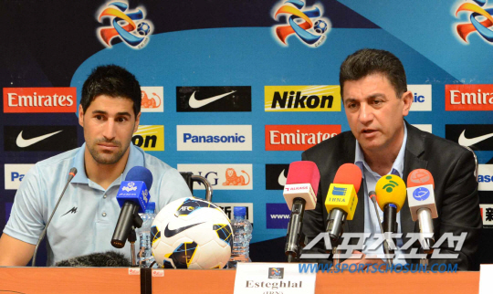 FC서울과 이란 에스테그랄의 AFC 챔피언스리그 4강 2차전을 하루 앞둔 1일 이란 테헤란 이란프로축구리그연맹에서 열린 기자회견에서 아미르 갈레노이 감독과 하셈 베이크자데 선수가 기자들의 질문에 답하고 있다. 테헤란(이란)=사진공동취재단 2013.10.01.