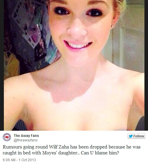 이번엔 팀 유망주 윌프리드 자하(20)가 데이비드 모예스 감독 딸과 황당한 성 추문에 휩싸였다.