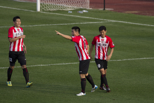 '미친 왼발' 이상협(27)이 '미친' 활약을 펼치며 상주 상무의 우승 경쟁에 불을 지피고 있다.