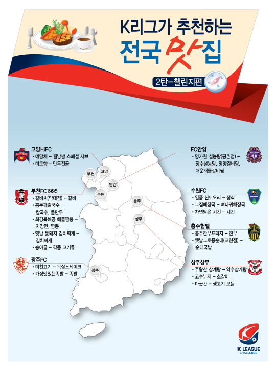 수원FC 경기장 주변에는 복싱 세계챔피언 출신 유명우가 운영하는 오리고기집을 비롯해 가마솥에 우린 뼈다귀 해장국, 축구장 필수 메뉴 중 하나인 치킨집이 기다리고 있다.