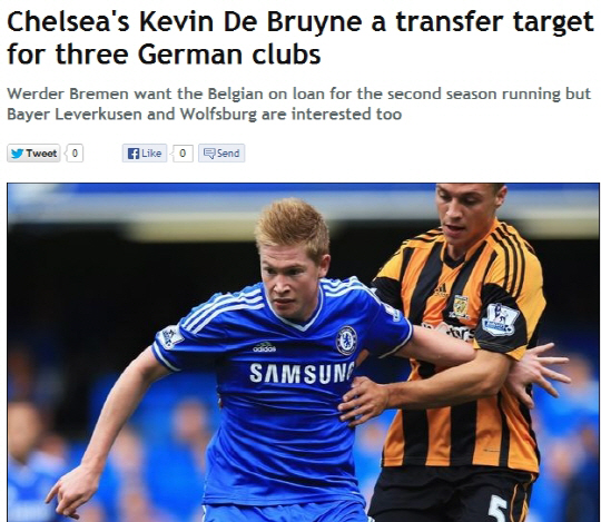 4일(한국시각) 영국 일간지 데일리미러는 바이에르 레버쿠젠과 베르더 브레멘이 데 브루잉을 노리고 있다고 보도했다. 올시즌 첼시로 복귀한 데 브루잉은 최근 부진으로 조제 무리뉴 감독의 외면을 받고 있다. 지난 유럽챔피언스리그 슈테아우아 부쿠레스티전 원정명단에서 제외되며 팀내 입지가 줄어든 모습이다.