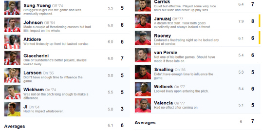 반면, 첫 선발 데뷔전에서 2골을 넣으며 역전승의 일등공신이 된 맨유의 신예 야누자이는 양팀 합쳐 최고 평점인 8점을 부여 받았다. '꿈의 선발 데뷔전, 완벽한 2골과 위협적인 모습'이라는 평가도 곁들여졌다. 맨유의 팀 평균 평점은 7점이었다. 하성룡 기자 jackiechan@sportschosun.com