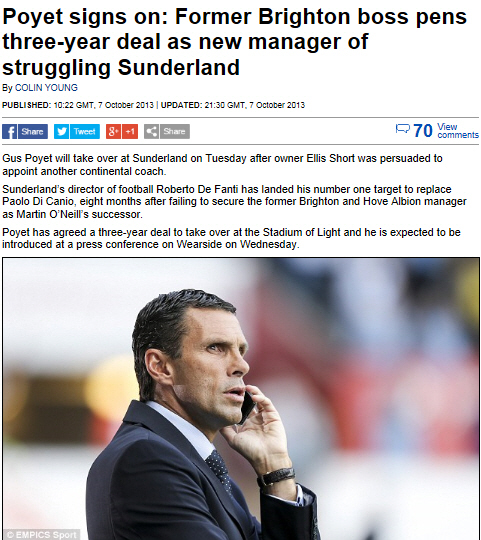 기성용과 지동원이 활약하고 있는 선덜랜드가 거스 포옛 감독과 계약을 앞두고 있다.