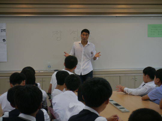 경남FC 정성훈(34)이 8일 마산중학교를 찾아 직업인 초청특강을 가졌다.