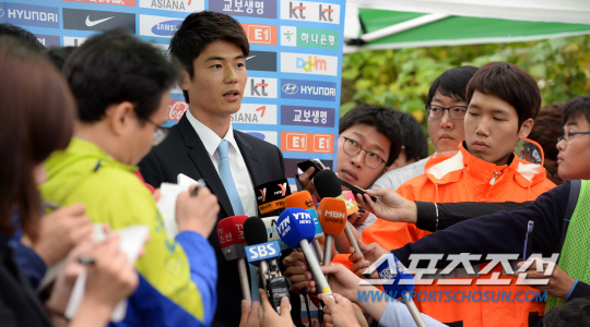 브라질과의 친선경기를 앞둔 홍명보호가 8일 파주NFC에 소집됐다. 기성용이 인터뷰를 하고 있다. 홍명보호는 12일 서울월드컵경기장에서 브라질과 15일 천안종합운동장에서 말리와 평가전을 갖는다. 파주=허상욱 기자 wook@sportschosun.com/2013.10.08/