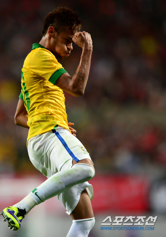 홍명보 감독이 이끄는 A대표팀이 12일 오후 서울 상암동 서울월드컵경기장에서 '영원한 우승후보' 브라질과 친선경기를 펼쳤다. 네이마르가 전반 43분 프리킥 선취골을 성공시키고 환호하고 있다. 상암=송정헌 기자 songs@sportschosun.com/2013.10.12
