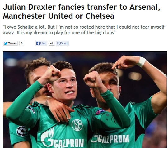 드락슬러는 13일(한국시각) 영국 일간지 데일리 익스프레스와의 인터뷰를 통해 빅클럽에서 뛰고 싶다는 의지를 밝혔다. 드락슬러는 "나는 샬케에 많은 것을 빚졌다. 나는 항상 샬케와 함께 있었다. 그러나 솔직히 말해 언젠가 빅클럽에서 뛰고 싶은 꿈이 있다. 빅클럽에서 월드클래스 선수들과 함께 위대한 목표를 달성하고 싶다"고 했다.
