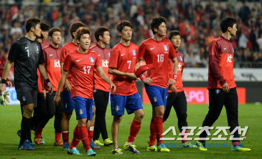 홍명보 감독이 이끄는 A대표팀이 12일 오후 서울 상암동 서울월드컵경기장에서 '영원한 우승후보' 브라질과 친선경기를 펼쳤다. 경기 종료 후 그라운드를 나서고 있는 선수들. 상암=송정헌 기자 songs@sportschosun.com |