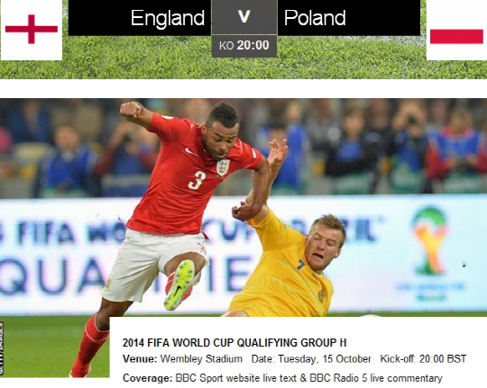 잉글랜드는 승점 19점으로 2014년 브라질월드컵 유럽지역 H조에서 1위를 달리고 있다. 2위 우크라이나는 18점이다. 우크라이나가 이번 예선에서 9전전패를 당한 산마리노와 경기를 치러 승리가 유력하다. 잉글랜드는 반드시 폴란드를 잡아야 브라질행을 확정할 수 있다.