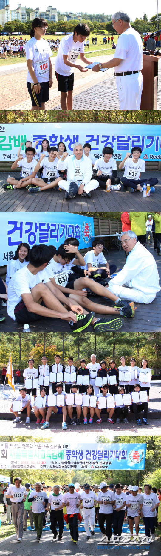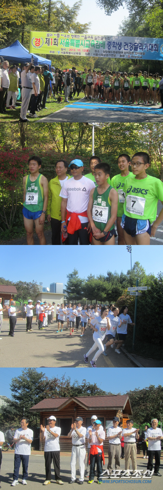 12일 오전 10시 서울시 상암월드컵공원 내 난지공원 잔디광장에서 '제1회 서울특별시교육감배 중학생 건강달리기 대회'가 열렸다. 학교체육에 특별한 관심을 지닌 문용린 교육감의 의지가 결실을 맺었다. 서울특별시교육청 산하 11개 지역교육청 비등록선수와 대한육상경기연맹에 등록된 선수 등 총 1200명의 중학생들이 이른 아침 난지공원에 결집했다. 지난 3월부터 '중학교 2학년'을 대상으로 한 각 학교 마라톤 대회에서 실력을 공인받은 서울 시내 동급최강 '건각'들이 총출동했다. '마라톤 영웅' 이봉주도 자리를 함께했다. TV로만 보던 애틀란타올림픽 은메달리스트 이봉주의 등장에 소년소녀들이 일제히 환호했다.