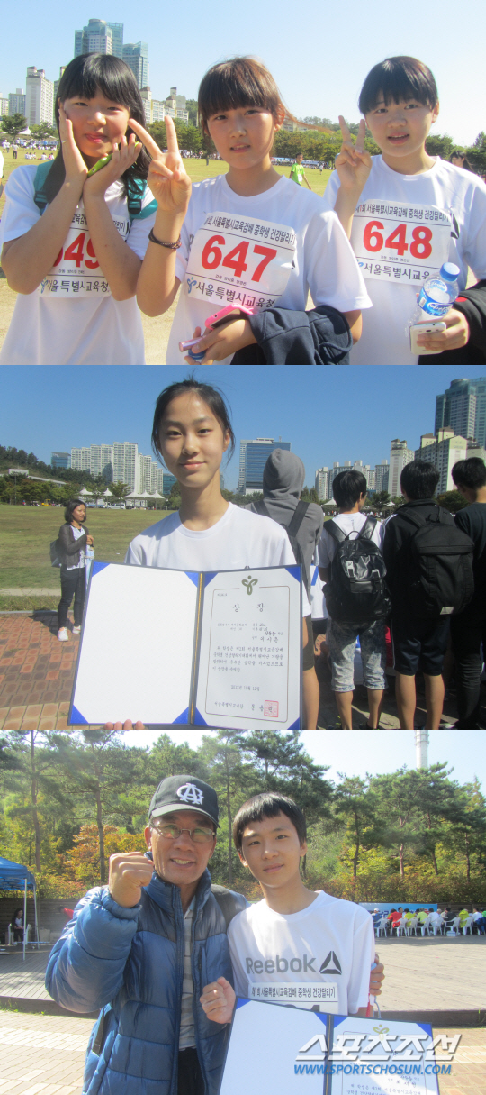 남녀부 개인전 1위를 차지한 학생들의 얼굴에선 남다른 성취감이 묻어났다. 최재형군(14·신수중)은 22분25초의 기록으로 1위에 올랐다. "서부교육청 대회에서 18위를 한 후 마라톤 선수 출신 아버지와 매일 2시간씩 훈련을 했다"고 털어놨다. "내가 제일 잘할 수 있는 달리기에서만큼은 누구에게도 지고 싶지 않았다"고 했다. 부단한 노력으로 서울시 1위에 올랐다. 이날 등록선수부 1위 기록(19분39초)에 3분 정도 뒤졌다. "어젯밤 연습때 18분대를 기록했었는데…"라며 아쉬워했다. 이번 대회를 통해 자신의 재능을 발견하고 확인한 것이 가장 큰 수확이다. '전문 마라토너'의 꿈을 갖게 됐다.