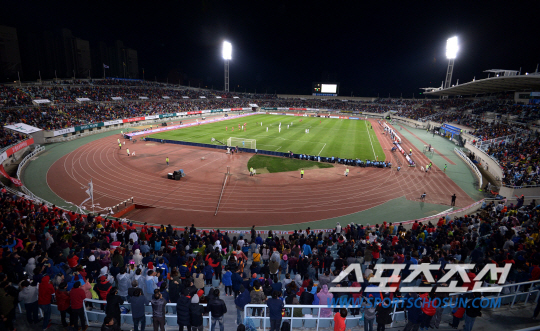 ◇15일 한국-말리 간의 친선경기가 열린 천안종합운동장의 모습. 이날 경기는 추운 날씨에도 불구하고 2만5000여장의 입장권이 2시간 전에 매진될 정도로 뜨거운 열기 속에 치러졌다. 천안=송정헌 기자 songs@sportschosun.com