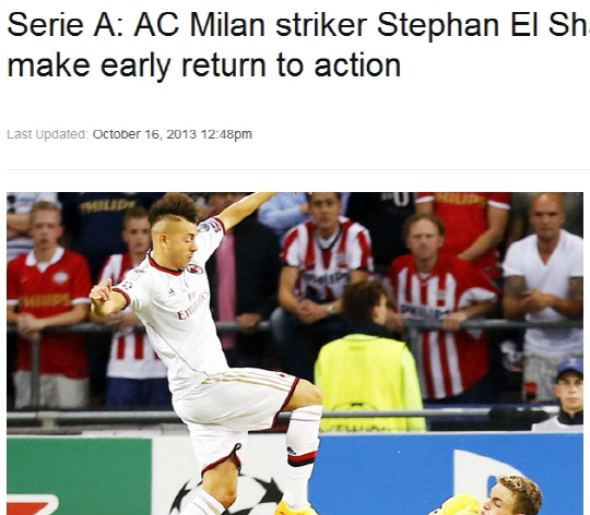 엘 샤라위는 지난달 훈련도중 왼쪽발에 부상을 입고 미세골절술을 받았다. AC밀란은 엘 샤라위의 공백을 메우지 못하고 12위에 머물러 있다. 마리오 발로텔리와 투톱을 이루는 엘 샤라위는 AC밀란 공격의 핵이다.