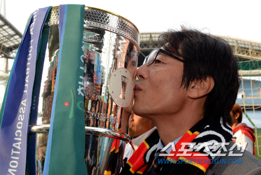 19일 전주 월드컵경기장에서 2013 프로축구 FA컵 전북과 포항의 결승전이 열렸다. 포항스틸러스가 승부차기 끝에 전북현대에 승리하며 FA컵 정상을 차지했다. 포항은 FA컵 역대 4회 우승을 차지하며 최다 우승 기록을 세웠다. 황선홍 감독이 우승트로피에 입을 맞추며 우승의 기쁨을 누리고 있다. 전주=송정헌 기자 songs@sportschosun.com/2013.10.19 |
