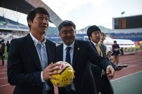 유상철 K-리그 홍보대사가 2002년 한-일월드컵 8강 스페인전 성지인 광주월드컵경기장에서 홍보대사로 첫 활동을 시작했다.