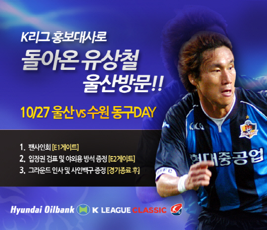 한편, 울산의 레전드인 유상철 전 대전 감독이 K-리그 홍보대사 자격으로 울산월드컵경기장을 방문한다. 2006년 3월 울산에서 은퇴한 유상철 홍보대사는 1994년 울산에서 프로무대에 데뷔해 9시즌간(1994~1998, 2002~2003, 2005~2006) 142경기 출전, 37득점-9도움을 기록했다.