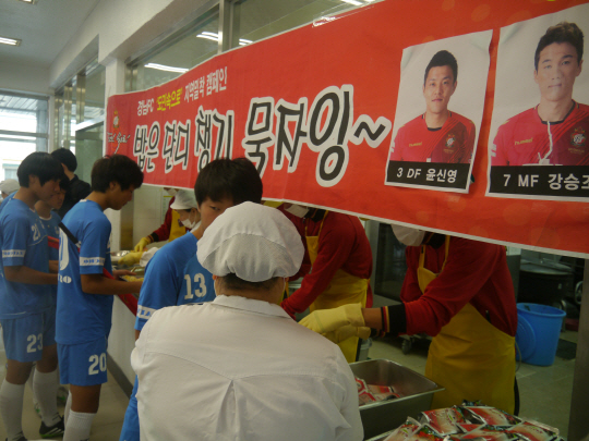 경남FC는 23일 거창 대성중학교에서 축구클리닉과 배식봉사 행사를 진행해 학생들로부터 큰 호응을 얻었다.