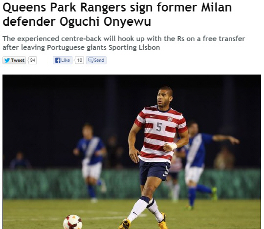오녜우는 스포르팅리스본과 계약이 만료되며 자유계약 상태였다. 오녜우는 지난해 말라가로 임대돼 단 두번의 선발출전에 그쳤다. 25일(한국시각) 영국 일간지 데일리미러에 따르면 올시즌 잉글랜드 챔피언십에서 순항 중인 퀸즈파크레인저스는 수비보강을 위해 공짜로 오녜우를 데려왔다. 오녜우는 뉴캐슬 유나이티드에서 잉글랜드 축구를 경험한 바 있다. 그는 퀸즈파크레인저스와 1년 계약을 마무리했다. 오녜우는 미국대표팀 일원으로 68경기나 소화한 베테랑 중에 베테랑이다. 지난 3년간 잦은 부상으로 27경기 출전에 그쳤지만 몸상태만 완벽하면 언제든 제 몫을 할 수 있는 선수다.