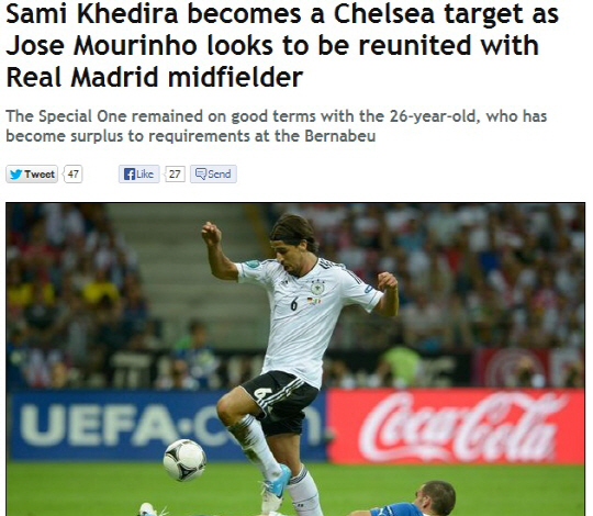 25일(한국시각) 영국 일간지 데일리 익스프레스는 조제 무리뉴 첼시 감독이 케디라를 최우선 영입 대상으로 낙점했고 로만 아브라모비치 구단주에게 그의 합류를 요청했다고 보도했다. 무리뉴 감독은 레알 마드리드 시절 케디라와 함께 한 바 있다. 데일리 익스프레스에 따르면 데이비드 모예스 맨유 감독 역시 케디라에게 여전히 관심을 보이고 있지만, 첼시가 경쟁에서는 우위를 보이고 있다고 전해졌다. 케디라의 몸값은 4000만파운드로 추정되고 있다.