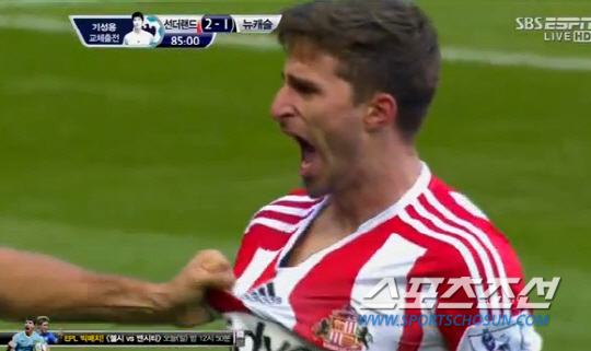 후반 39분 기성용의 발끝에서 선덜랜드의 역습이 시작됐다. 기성용이 잭 콜백에게 밀어준 볼은 알티도어를 거쳐 후반 교체투입된 보리니의 발끝에 도착했다. 보리니가 페널티박스 정면에서 날린 강력한 오른발 슈팅이 골망을 시원하게 흔들었다. 리버풀에서 임대로 선덜랜드 유니폼을 입은 보리니가 '타인위어 더비'의 주인공이 됐다. 보리니 역시 관중석으로 뛰어들었다. 종료 6분전 터진 결승골에 빛의 구장은 극장이 됐다.