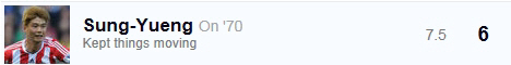 영국 스포츠 전문매체 스카이스포츠는 선덜랜드-뉴캐슬의 '타인위어 더비' 직후 기성용에게 평점 6점을 부여했다. '상황을 계속 돌아가게 했다(Kept things moving)'고 평가했다. 중원에서 볼을 소유하고 배급하고 찔러주는 연결고리 역할을 적절히 수행했다는 뜻이다.