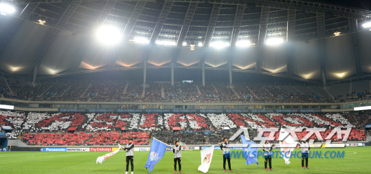 FC서울과 광저우 에버그란데(중국)의 아시아축구연맹(AFC) 챔피언스리그 결승 1차전이 26일 서울월드컵경기장에서 열렸다. 양팀의 경기를 보기 위해 경기장을 찾은 축구팬들이 경기장을 가득메우고 있다. ACL 우승팀에는 상금 150만달러(약 15억9000만원)와 함께 세계 최고의 클럽을 가리는 클럽월드컵 출전권이 주어진다. K리그는 최근 5년 연속 ACL 결승에 올랐다. 포항(2009년), 성남(2010년), 울산(2012년)이 우승컵에 입맞춤했고, 전북(2011년)은 아쉽게 준우승을 차지했다. 상암=허상욱 기자 wook@sportschosun.com/2013.10.26/