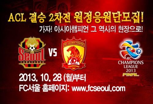 FC서울이 11월 9일 중국 광저우에서 열리는 아시아챔피언스리그 결승 2차전의 원정 응원단을 모집한다.