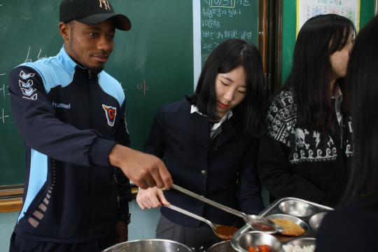 이번 학교방문은 지난해부터 대구FC와 대구시 교육청이 지역사회공헌활동의 일환으로 축구를 통해 실시중인 재능기부이다. 이날 대구 침산중에는 조영훈 황순민 아사모아가 참가했다. 상인초에는 이양종 최호정 김영찬이 참가해 점심식사 배식이후 함께 식사를 하고 팬 사인회와 포토타임을 실시했다.