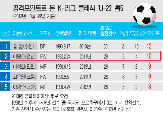 전남유스 출신으로 프로 3년차인 이종호는 올시즌 초 시련을 맛봤다. 홈 개막전인 3월2일 제주전에서 페널티킥을 실축했다. 트라우마에 시달렸다. 선발명단에서도 제외됐다. 광양제철고 시절 '광양루니'라는 별명과 함께 초고교급 스트라이커로 각광받았던 선수다. 위기감이 엄습해왔다. "이러단 그저그런 프로선수로 남을 수도 있겠구나 하는 생각이 들었다."