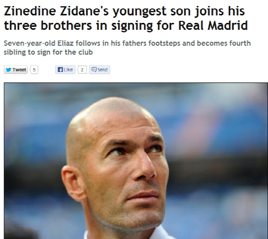특히, 아버지와 함께 그의 4명이 아들이 모두 레알 마드리드 유니폼을 입고 선수로 뛰게 됐다. 30일(한국시각) 영국 일간지 데일리미러는 지단의 넷째 아들 엘리아스가 유스팀에 합류했다고 보도했다. 이미 첫째 아들 엔조는 레알 마드리드의 18세 이하 팀에서 뛰고 있다. 조만간 프로계약을 맺을 예정이다. 둘째 루카와 셋째 테오는 각각 골키퍼와 공격형 미드필더로 레알 마드리드 유스팀에서 활약 중이다.
