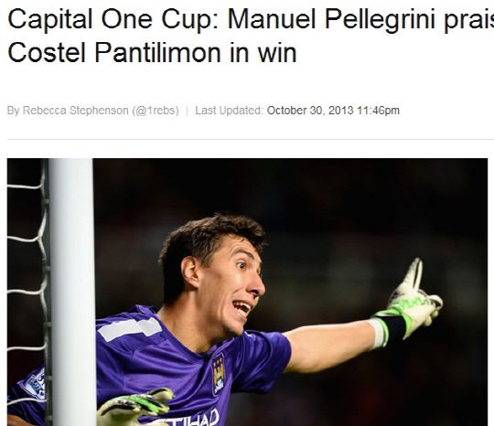 마누엘 페예그리니 감독은 31일(한국시각) 뉴캐슬 세인트제임스 파크에서 벌어진 2013~2014시즌 잉글랜드 캐피탈 원컵(리그컵) 16강전 뉴캐슬전이 끝난 후 코스텔 판틸리몬 골키퍼에 칭찬을 아끼지 않았다. 맨시티는 무실점으로 경기를 마치며 2대0 승리를 거뒀다. 페예그리니 감독은 "판틸리몬은 항상 내 신뢰를 받고 있다. 그는 좋은 선수다. 경기에 많이 나서는 것은 아니지만, 오늘 무실점으로 그의 중요성을 다시 한번 보여줬다"고 했다. 판틸리몬은 뉴캐슬전 맨오브매치에 선정됐다.