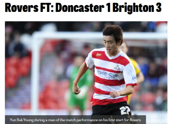 윤석영은 3일 자정 돈캐스터 킵모트스타디움에서 펼쳐진 영국 챔피언십(2부리그) 브라이턴 앤드 호브알비언전에서 선발출전해, 90분 풀타임을 뛰었다. 1-1로 균형을 유지하던 돈캐스터는 막판 5분, 세트피스 상황에서 2골을 내주며 1대3으로 패했다. 팀은 패했지만 왼쪽 측면에서 윤석영의 활약은 단연 돋보였다. 영국 일간지 더스타는 1대3 패배에도 불구하고 윤석영을 메인 사진으로 내걸었다. "첫 선발 데뷔전에서 '맨 오브 더 매치(Man of the Match)' 활약을 선보였다"고 칭찬했다.