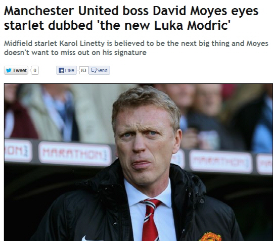 4일(한국시각) 영국 일간지 데일리미러는 데이비드 모예스 맨유 감독이 10대 미드필더 캐롤 리네티를 노리고 있다고 보도했다. 리네티는 레알 마드리드에서 뛰고 있는 루카 모드리치와 비견될 정도의 재능을 갖고 있는 것으로 평가된다. 리네티는 기술과 창조성을 두루 갖췄다. 나이는 18세에 불과하다. 모예스 감독은 리네티를 관찰하기 위해 여러차례 스카우트를 파견한 것으로 알려졌다. 리네티의 몸값은 400만파운드로 추정되며 맨유는 1월이적시장에서 정식으로 제안을 건낼 것이라고 데일리미러는 전했다.