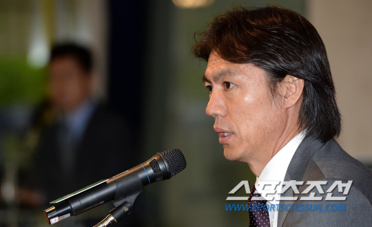 홍명보 축구대표팀 감독이 4일 서울 신문로 축구회관에서 스위스, 러시아와의 평가전에 나설 대표팀 명단을 발표했다. 명단발표 후 질문에 답하는 홍명보 감독. 허상욱 기자 wook@sportschosun.com/2013.11.04/
