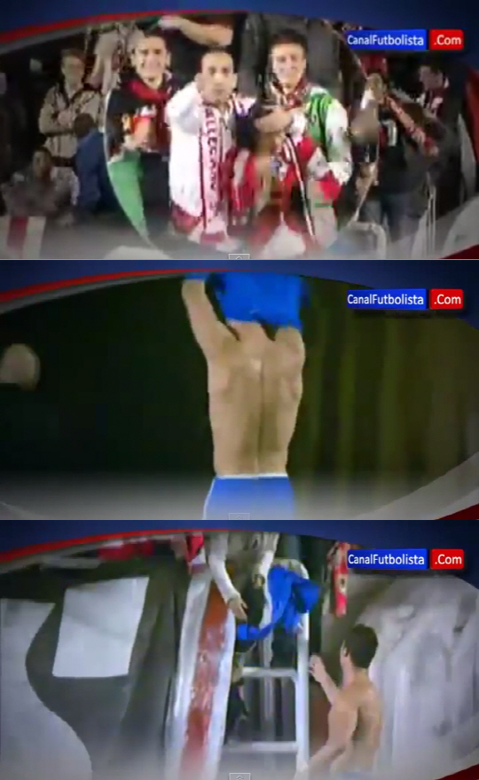 이날 2분 만에 1골을 터뜨린 호날두는 전반 중반 골대 뒤 상대편 관중이 있는 곳으로 강슛을 날려 그만 상대팀 여성 서포터스의 머리를 정통으로 맞히고 말았다.