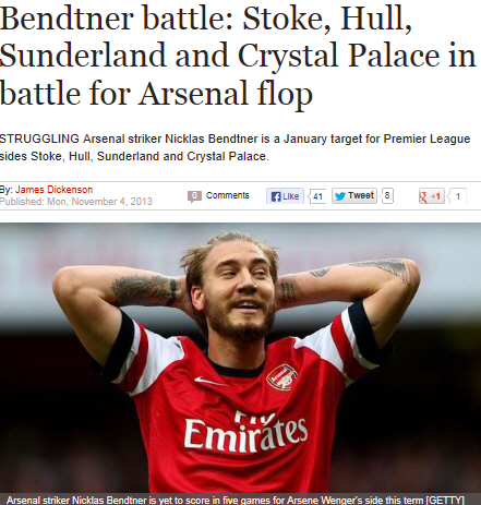 덴마크 국가대표 공격수 벤트너는 1월 이적시장에서 아스널을 떠날 간능성이 높다. 선덜랜드와 유벤투스에 임대를 다녀온 벤트너는 지난 10월 초 아스널의 스쿼드에 복귀했지만 2경기 출전에 그치고 있다. 이뿐만 아니라 벤트너는 2011년 이후 아스널의 유니폼을 입고 득점을 기록한 적이 없다. 아르센 벵거 아스널 감독은 지루의 백업으로 그를 사용할 계획도 세웠지만 좀처럼 올라오지 않는 그의 몸상태에 실망하고 있는 듯 하다. 이에 벵거 감독은 내년 여름에 계약이 끝나는 벤트너를 이번 1월에 이적시키고 최전방 공격수를 새로 영입할 계획을 세우고 있다.