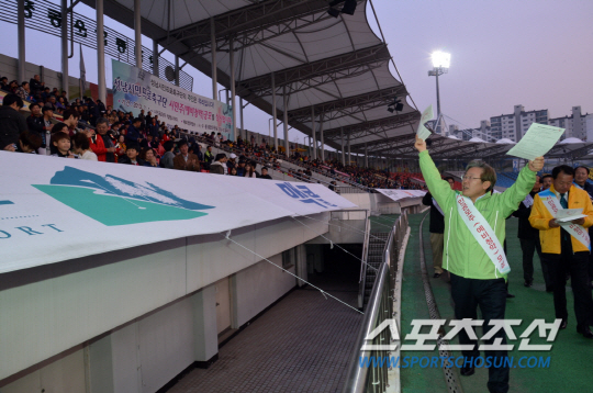 이 시장이 이날 성남 탄천구장을 찾은 목적은 확실했다. 성남시는 지난 1일부터 성남시민구단 시민 공모주 예비청약을 받기 시작했다. 성남시청, 3개 구청, 동 구민센터에 청약서를 비치했다.