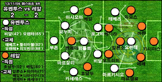 유벤투스(이하 유베)가 또 울었다. 6일 새벽(한국 시각) 이탈리아 토리노의 유벤투스 스타디움에서 열린 레알마드리드(이하 레알)와의 13-14 UEFA 챔피언스리그 B조 4차전에서 2-2로 비긴 이들은 또 한 번 승수 쌓기에 실패했다. 2주 전 산티아고 베르나베우에서 경기를 잘 풀어놓고도 키엘리니의 PK 헌납과 퇴장으로 패배의 수렁에 빠진 유베는 이번에도 잘못된 백패스 '실수'로 '다 된 밥'을 모두 태워버렸다. 3무 1패를 기록한 이들은 레알(승점10)-갈라타사라이(4점)-코펜하겐(4점)에 이어 최하위로 처졌다.