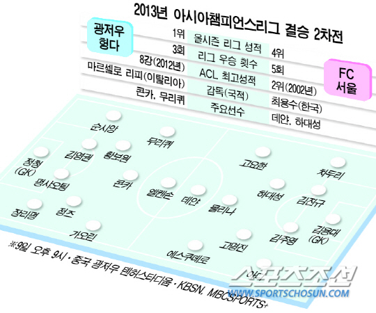 베스트 11의 윤곽은 드러났다. 1차전에서 경고 누적으로 결장한 차두리가 가세하는 것 외에 큰 변화는 없을 것으로 예상된다. 1차전에서 각각 1골-1도움을 기록한 데얀과 에스쿠데로, 성남 시절 ACL 우승 경험이 있는 몰리나는 상대의 경계대상 1순위다. 국내파도 호시탐탐 주연을 노리고 있다. 윤일록이 올시즌 ACL에서 터트린 4골의 상대는 모두 중국팀(장쑤·3골, 베이징·1골)이었다. 고요한도 틈새를 노리고 있다. 하대성과 고명진의 허를 찌르는 중거리 슈팅도 기대해볼 만 하다. 김진규 김주영 아디 등 '수트라이커'와 저돌적인 오버래핑으로 골과 점점 가까워지고 있는 차두리도 '비밀병기'다.