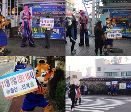 또 2014년 대학수학능력시험이 치러진 7일 오후에는 울산지역 학생들이 많이 모이는 중국 성남동 젊음의 거리로 나가 수험표를 제시하면 전북전 입장권을 증정하는 이벤트를 진행했다.