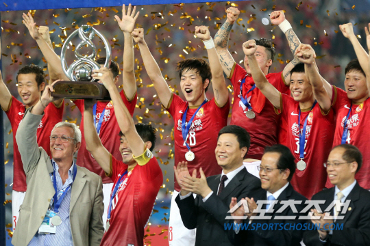 중국은 1990년 랴오닝이 아시아를 제패한 이후 23년 만에 아시아 클럽 축구 정상에 올랐다. 광저우의 성공, 빼놓을 없는 것이 '머니 파워'와 마르셀로 리피(65·이탈리아) 감독이다. 외국인 선수의 수준은 탈아시아급이다. 브라질 출신의 무리퀴(27·이적료 350만달러·약 37억원)와 엘켄손(24·이적료 750만달러·약 79억원), 아르헨티나의 콘카(30·이적료 1000만달러·약 106억원)의 몸값은 200억원을 훌쩍 넘는다. 주전으로 출전하는 국내파는 전원이 중국 국가대표다.
