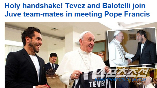 프란시스 교황이 축구선수를 만난 것은 테베스가 처음이 아니다. 지난 8월 이탈리아대표팀을 바티칸에 초청해 만남을 가졌다. '악동' 발로텔리와도 악수를 나누며 환담을 나눴다. 지난 5월엔 리오넬 메시와 유벤투스 골키퍼 부폰과 만났다. .