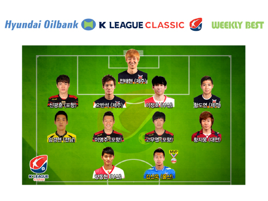 최고의 미드필더에는 황지웅(대전) 고무열 이명주(이상 포항) 임경현(전남)이 자리했다. 포백 라인은 황도연(제주) 이정호(부산) 오반석(제주) 신광훈(포항)이 차지했다. 최고의 수문장 자리는 제주의 전현태에게 돌아갔다. 이번 라운드 베스트 팀은 대전이었다. 베스트 매치는 수원-포항(포항 2대1 승)전이 차지했다.