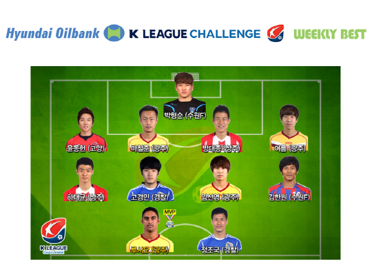 한편, 챌린지에서는 루시오(광주)가 32라운드 MVP에 올랐다. 루시오는 10일 충주전에서 2골-1도움으로 팀의 4대0 대승을 이끌었다. 주간 베스트 공격수에는 이상협 외에 정조국(경찰)이 선정됐다. 미드필더에는 김한원(수원) 임선영(광주) 고경민(경찰) 하태균(상주)가 뽑한 가운데 수비수에는 여 름 마철준(광주) 방대종(상주) 윤동헌(고양)이 이름을 올렸다. 최고 골키퍼 자리는 박형순(충주)이 차지했다.