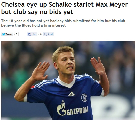 13일(한국시각) 영국 일간지 데일리미러는 첼시가 메이어 영입을 노리고 있다고 보도했다. 데일리미러는 첼시가 메이어 영입을 위해 1200만파운드를 준비했다고 보도했다. 메이어는 샬케 유스 시스템이 만든 걸작이다. 그는 올시즌 15경기에 출전해 4골을 넣으며 주목받고 있다. 마찬가지로 빅클럽의 러브콜을 한몸에 받고 있는 줄리안 드랙슬러와 비견되고 있다. 드랙슬러 역시 샬케 유스팀을 거쳐 독일 국가대표까지 발탁된 독일의 차세대 스타다. 메이어가 범상치 않은 재능을 뽐내자 조제 무리뉴 감독이 그에 대한 비상한 관심을 드러내고 있다.