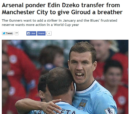 제코는 최근 출전시간이 부족하다며 불만을 표시하고 있다. 그는 적은 출전시간에도 불구하고 6골을 기록하며 변치 않은 득점력을 과시하고 있다. 15일(한국시각) 영국 일간지 데일리미러에 따르면 올리비에 지루와 함께 할 공격수를 찾는 아스널이 제코에 관심을 보이고 있다. 지루는 올시즌 아스널의 붙박이 원톱으로 나서며 피로감을 호소하고 있다. 몸상태가 완전치 않아 의료팀의 특별 프로그램을 소화 중이다. 아스널 입장에서는 새로운 공격수 영입이 절실하다.